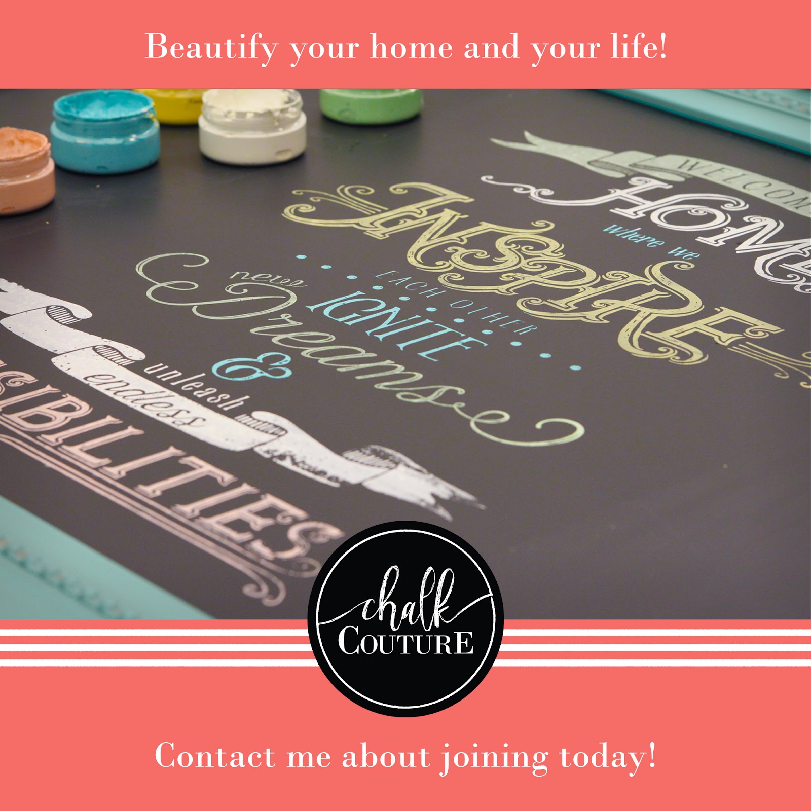 You will receive a 50% off coupon to use on an ENTIRE ORDER (not just one item.) and I'll help you get started on this AMAZING adventure of owning your own Chalk Couture business!
